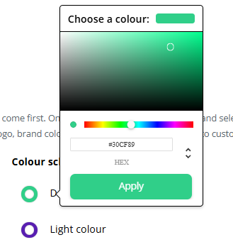 You can also set your colour scheme by clicking next to the Options outlines on the page.