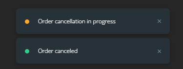 5) Once the Cancel Order button is clicked you will see the prompt in the bottom left of the screen appear. This shows the process of the Order being cancelled.
