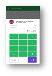 After the user is scanned, you will be presented with a "Load or Redeem" screen, select the LOAD option