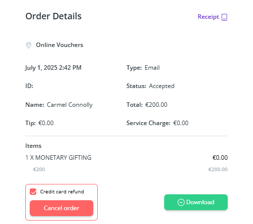 This will then download the voucher as a pdf file. This can then be used to resend to the customer or the intended recipient