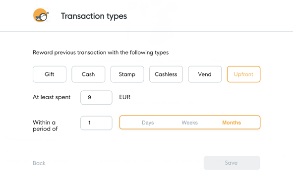 *On the transaction type page, select 'Upfront' if you would like to reward your customers for topping up their account.