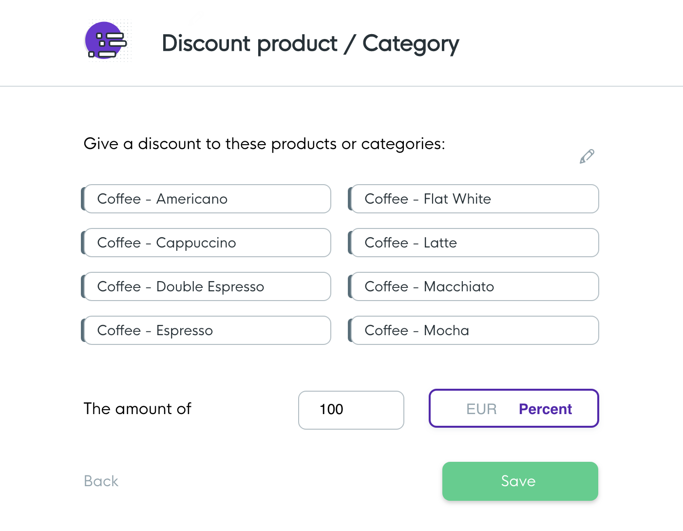 6) On the next page, click on the pencil icon beside 'Product/Category' discount.