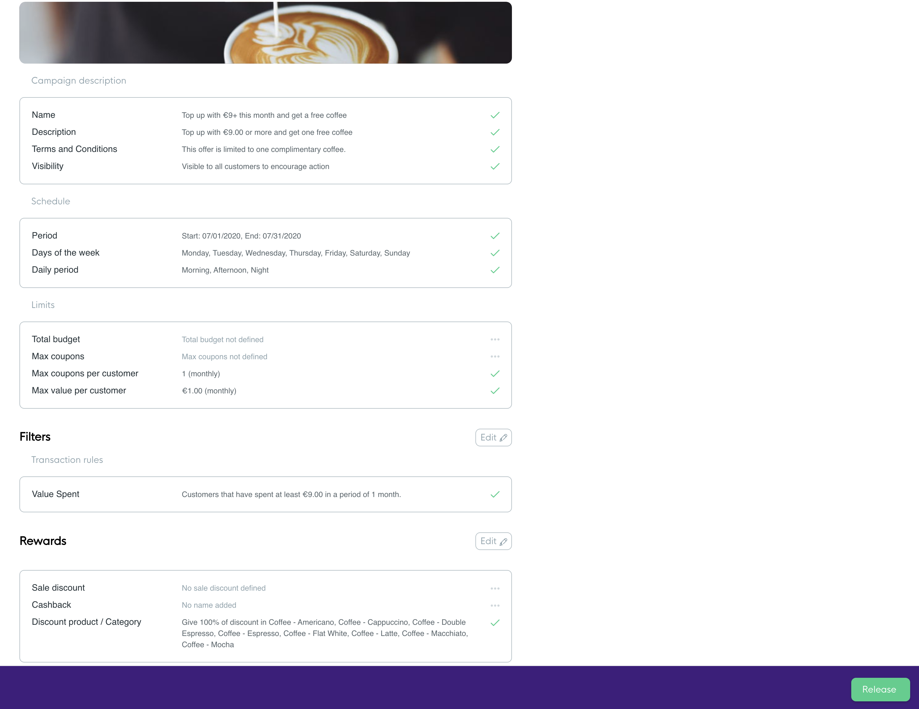 7) Last but not least, you will see an overview of the entire campaign before you have the option to release it to the public.
