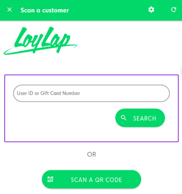 1) Open 'Loyalty by LoyLap' and search for the account - to search for the account you can scan the QR code on the back of the card or manually input the ID below the QR code.