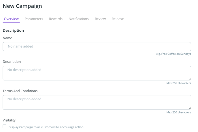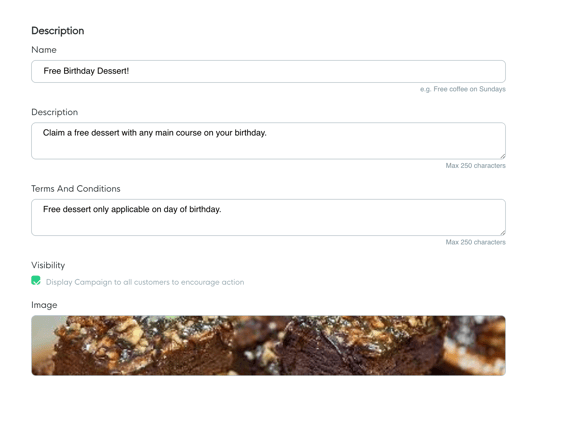5) New campaign fields can be amended at any time before and after publication so start with a basic outline to be reviewed upon release. These fields are customer-facing, and can be viewed on a merchant's custom profile on the LoyLap app, or member.loylap.com under "Offers".