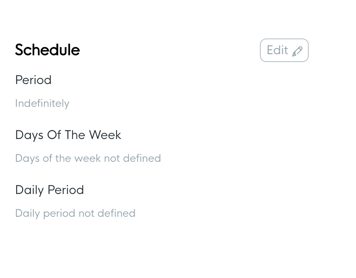 6) On the next page, you can set the schedule and include limits, by selecting 'Edit' next to each section. In this case, there's no need to schedule this campaign as it will run indefinitely.