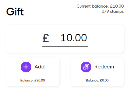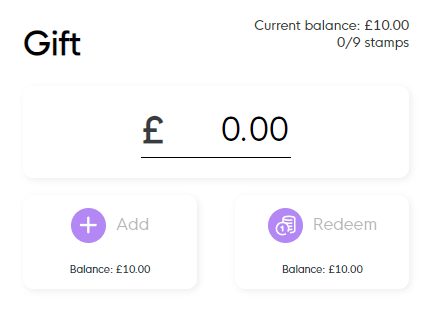 For this example I have entered '10'. As you can see, the effect of adding or redeeming £10 is now being reflected in the (New) 'Balance' below each option.