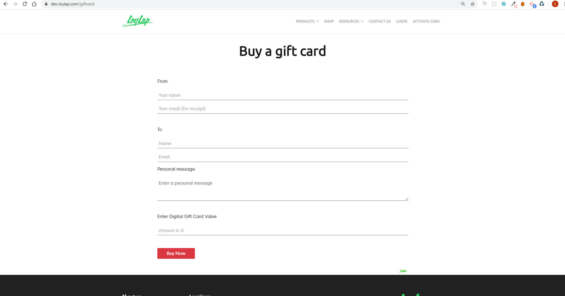 - NOTE: Your website must have a valid and active SSL certificate to render the gift card form securely, otherwise you will just see the shortcode text on the page e.g. [loylap_inline_short]