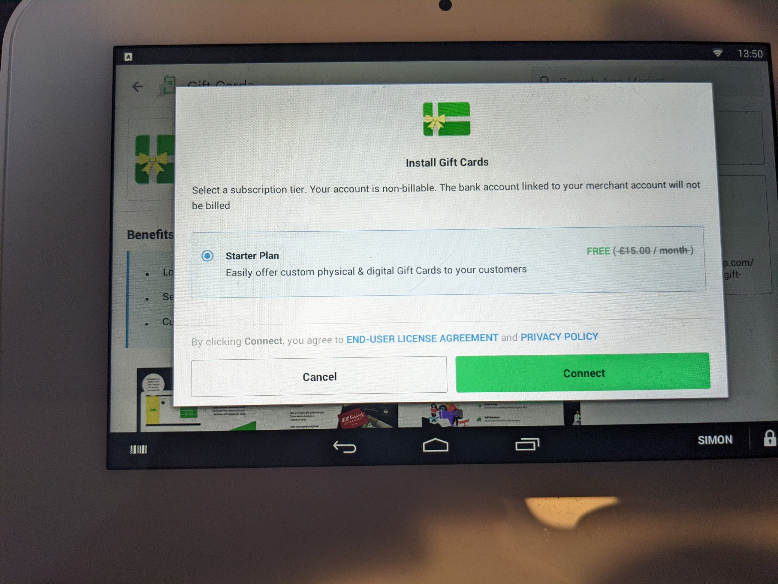 6) Ensure the subscription plan shows for 15.00/month and tap "Connect".