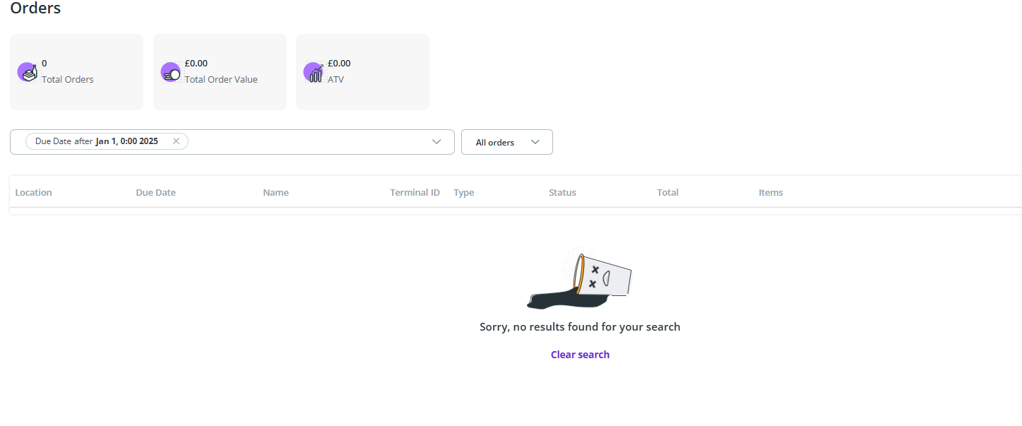 4) We can use the filters provided to search for specific Orders. We'll use the Due Date filter to show orders for 2024.