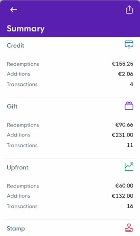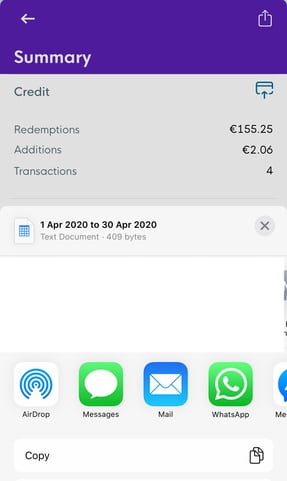 3) After you’ve tapped ‘Apply’ you will then see all transactions made for your chosen dates. To export a transaction summery of the sales, tap the middle icon on the top right of the page (It is the icon of a page).