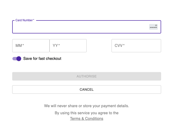 - Input your card details and ensure that the toggle/switch labelled 'Save for a faster checkout'