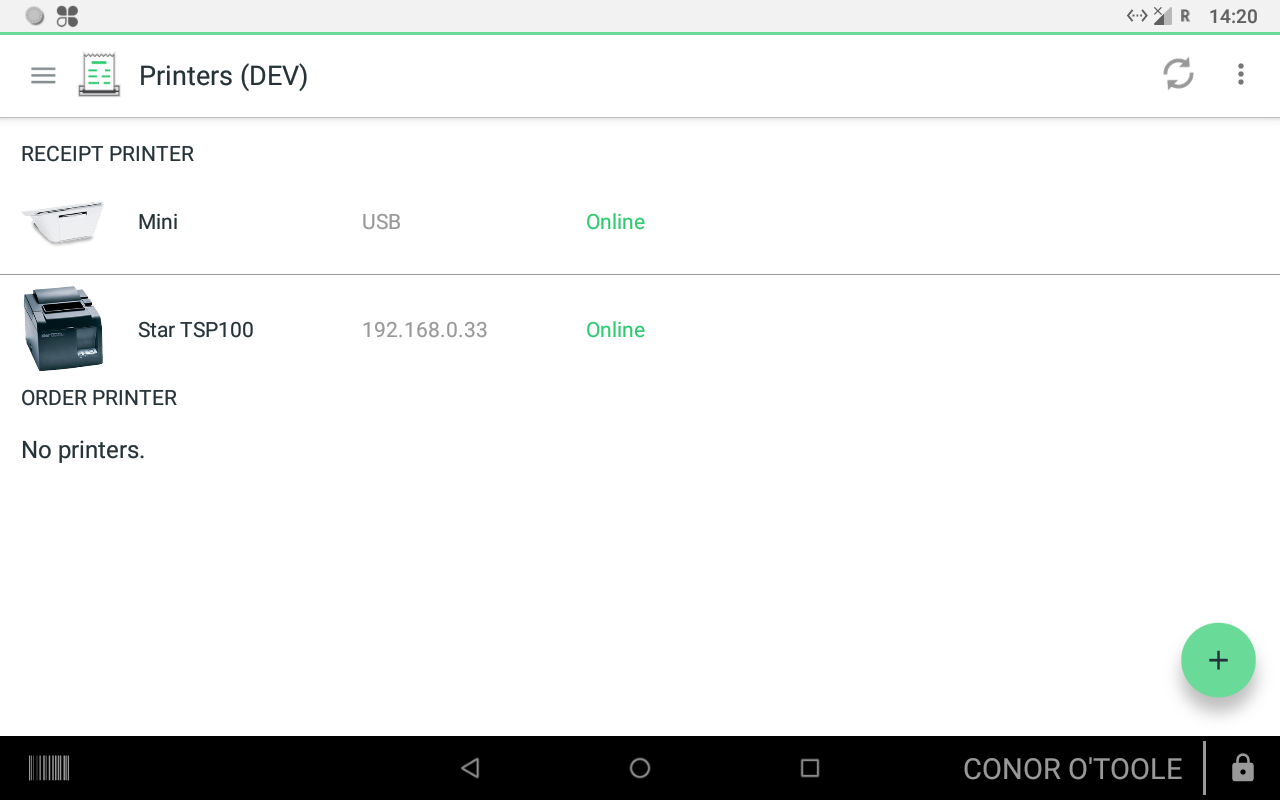 4) Tap on 'Default printer' and select the printer that your wish to connect to the ordering app