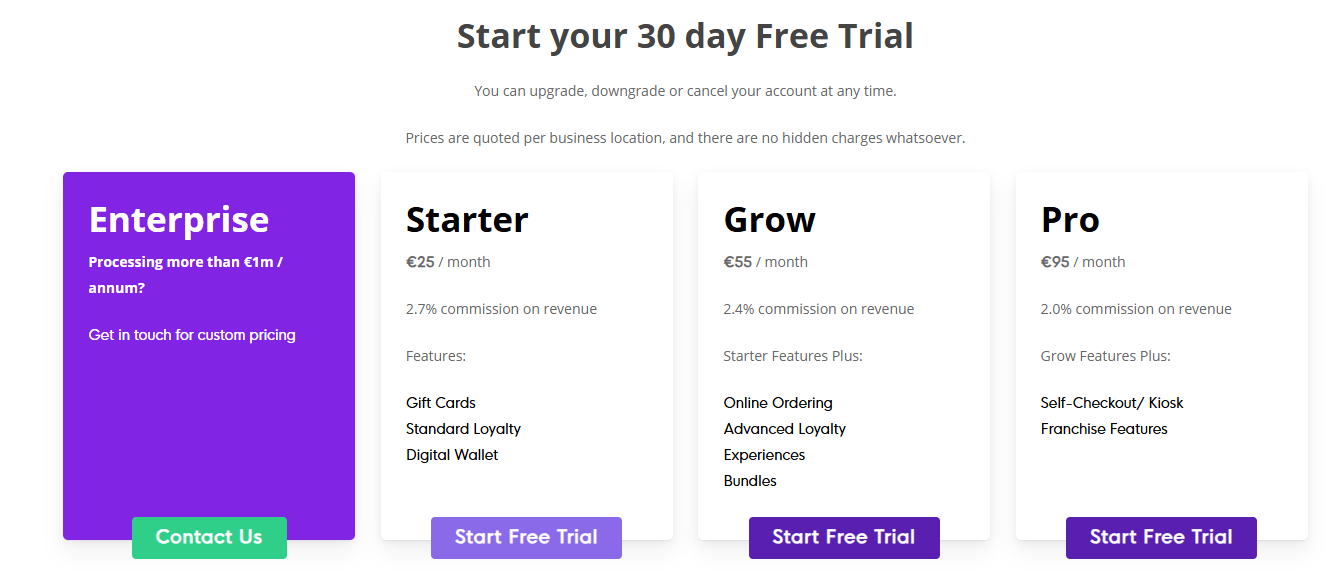 Once you have finished inputting the detail about your business you'll be taken to the pricing pages where you can find a choice of available plans,these will be the same as those listed on the intitial pricing page