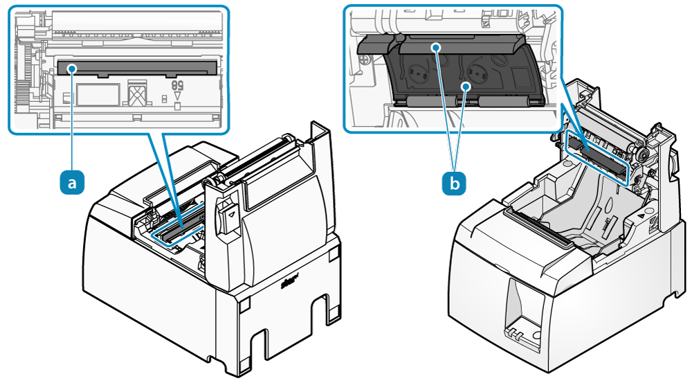 inside the printer that becomes hot during printing or right after printing. Do not touch the printer head when opening or closing the printer cover.