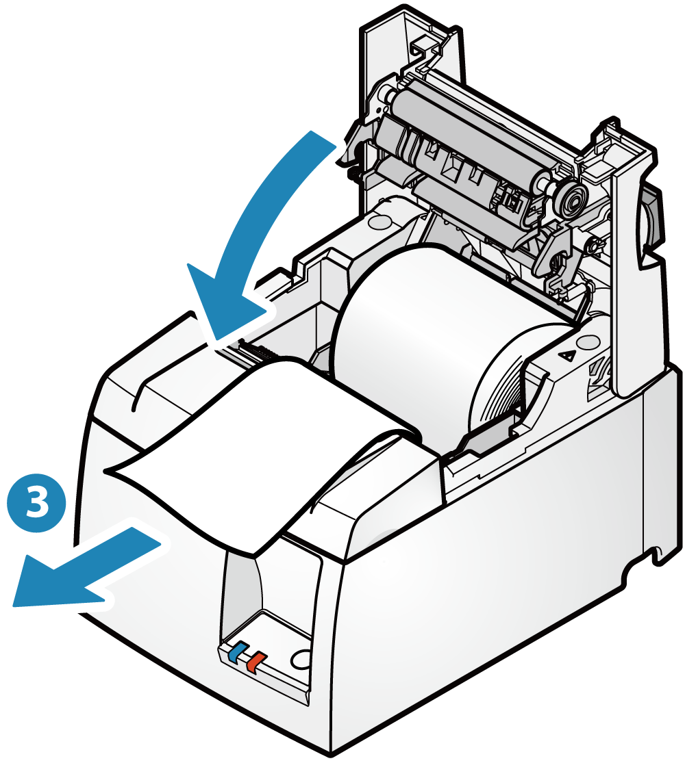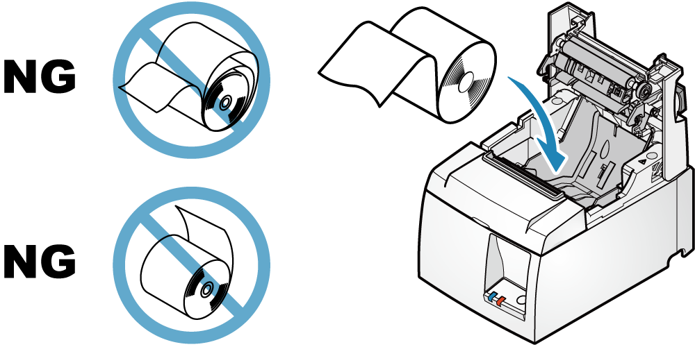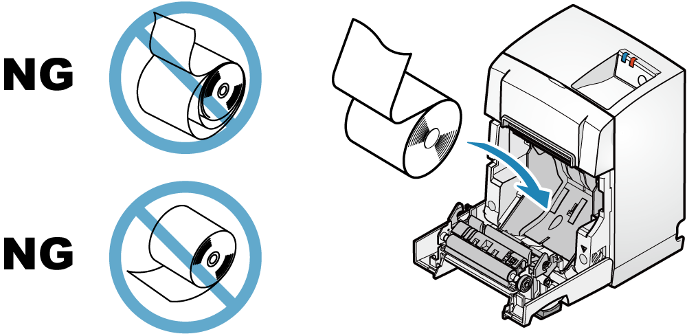 - If the unit is set up vertically with the attached mounting bracket or the vertical stand (option), set the paper roll as shown in the next illustration.