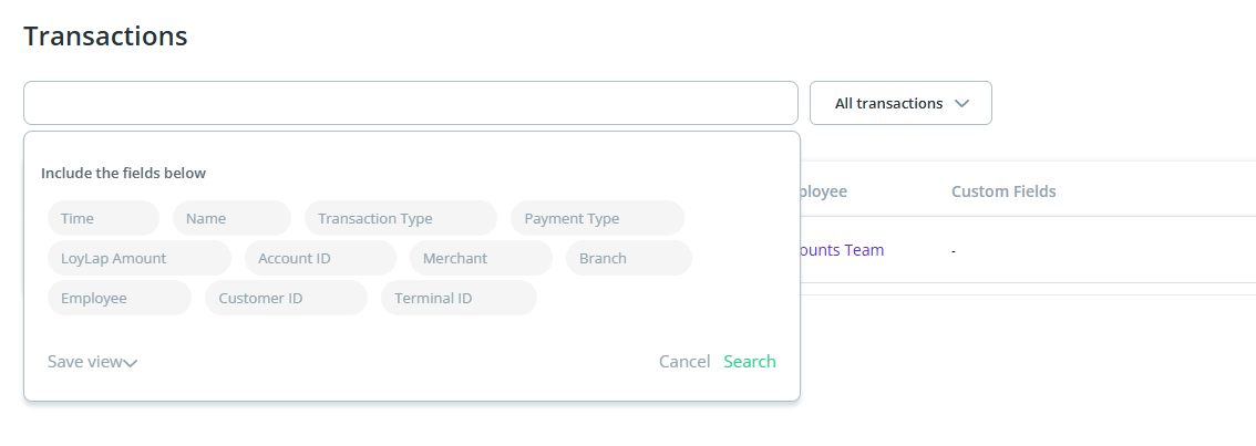 If you are looking for transactions made by a specific person, use this filter and input the name that their LoyLap account is registered to.